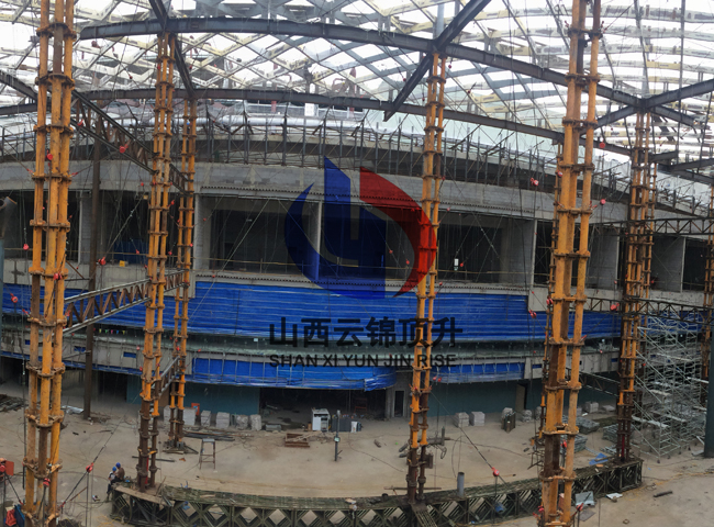 (5)整体提升法:适用于周边支承及多点支承网架,可用升板机、液压千斤顶等小型机具进行施工;